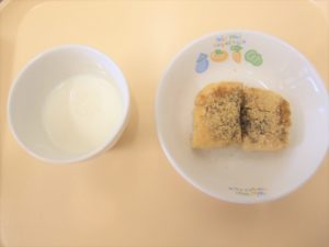 午後おやつ:牛乳、黒糖ラスク