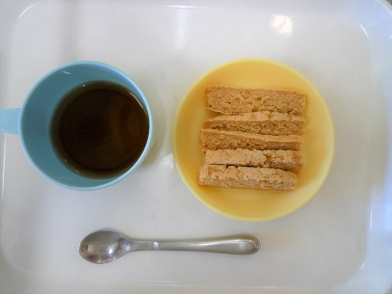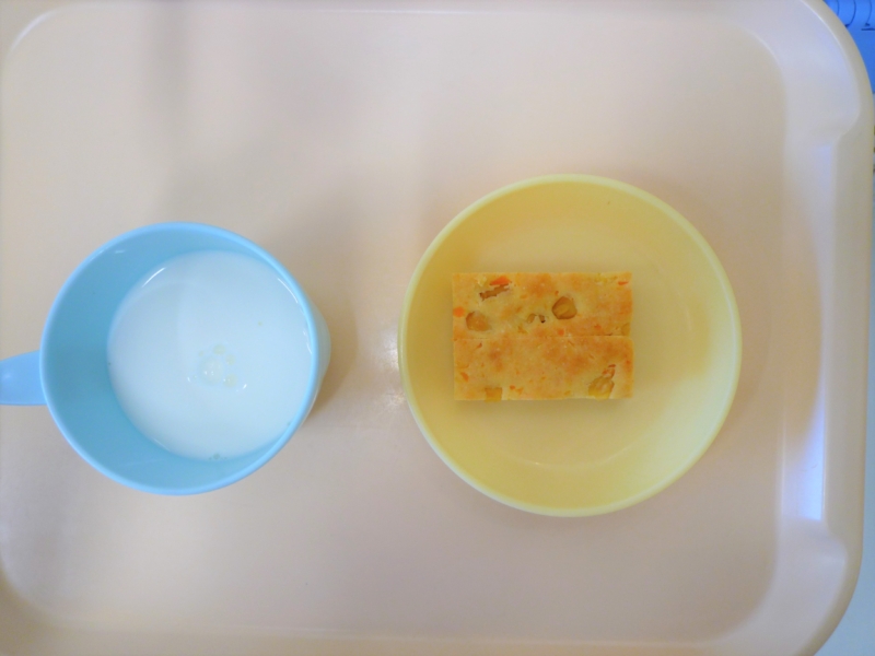 離乳食(後期)午後おやつ:麦茶、きなこパンケーキ