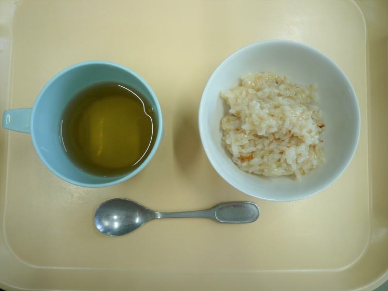離乳食(後期)午後おやつ:麦茶、おかか粥