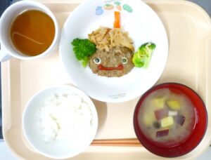 節分メニューでは、鬼の嫌ういわしを使用したハンバーグ、恵方巻はツナマヨと人参とほうれん草のナムルを巻きました。今年も邪気を追い払い福を招き、皆様が元気に過ごせますように。