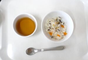 離乳食(後期)午後おやつ:ひじきご飯、麦茶