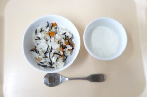 午後おやつ:ひじきごはん、牛乳