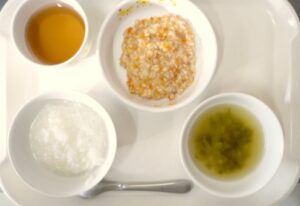 離乳食(中期)午前食:おかゆ、肉じゃが、すまし汁