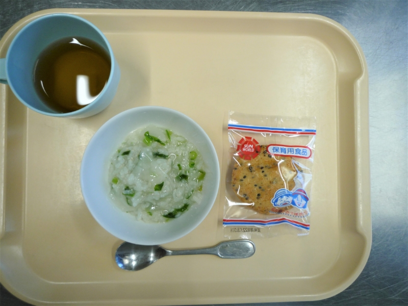 離乳食(中期)午前食:おかゆ、豆腐の野菜煮、すまし汁