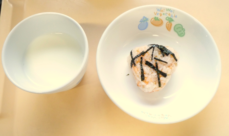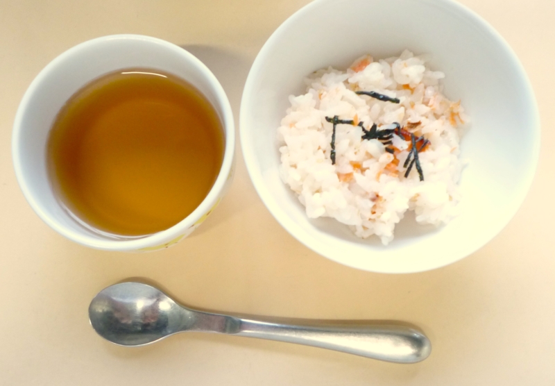 離乳食(後期)午後おやつ:鮭ごはん(粥)、麦茶