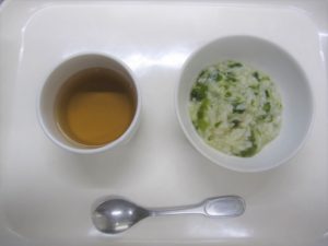 離乳食(後期)午後おやつ:麦茶、わかめ粥