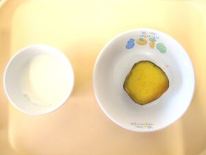 離乳食(後期)午後おやつ:焼き芋、麦茶