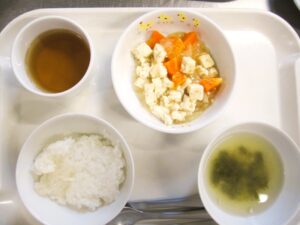 離乳食(後期)昼食:おかゆ又は軟飯、豆腐と野菜のうま煮、みそ汁