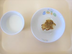 離乳食(後期)午後おやつ:麦茶、ごまみそ粥