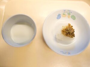離乳食(後期)午後おやつ:麦茶、みそおにぎり