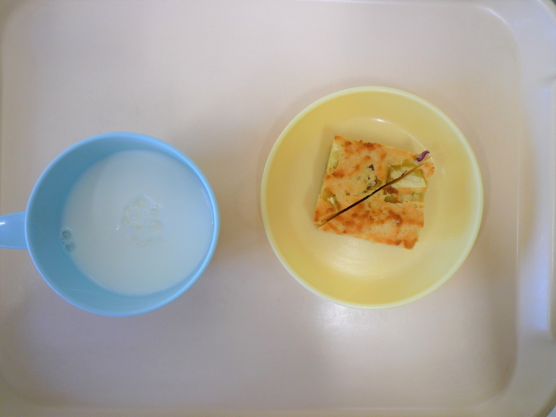 午後おやつ:牛乳、おさつパン