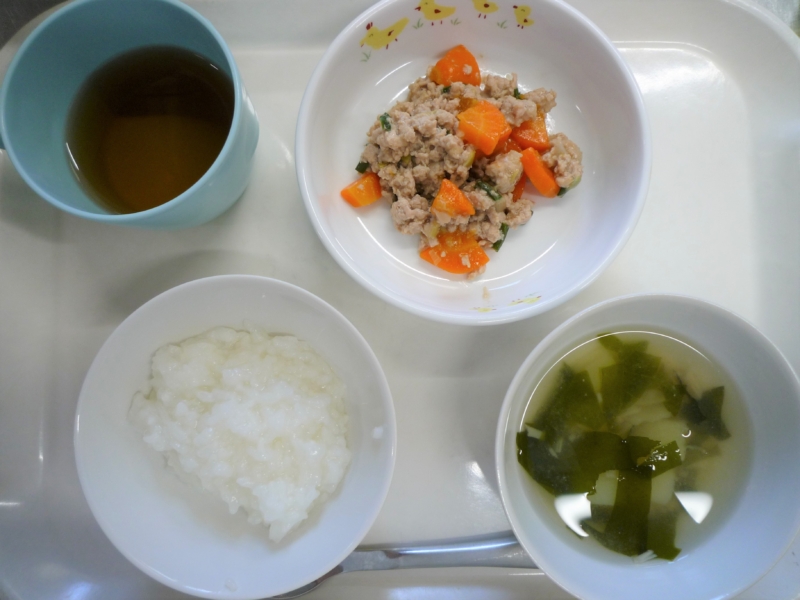 離乳食(後期)昼食:全粥、野菜のそぼろ煮、みそ汁