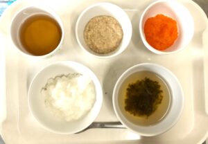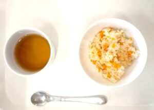 離乳食後期のおやつ:にんじんごはん、麦茶