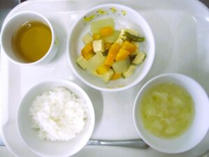 離乳食(後期)昼食:軟飯、高野豆腐と冬瓜の煮物、みそ汁