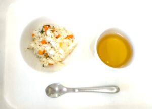 離乳食(後期)午後おやつ:ツナとにんじんの炊き込みごはん、麦茶