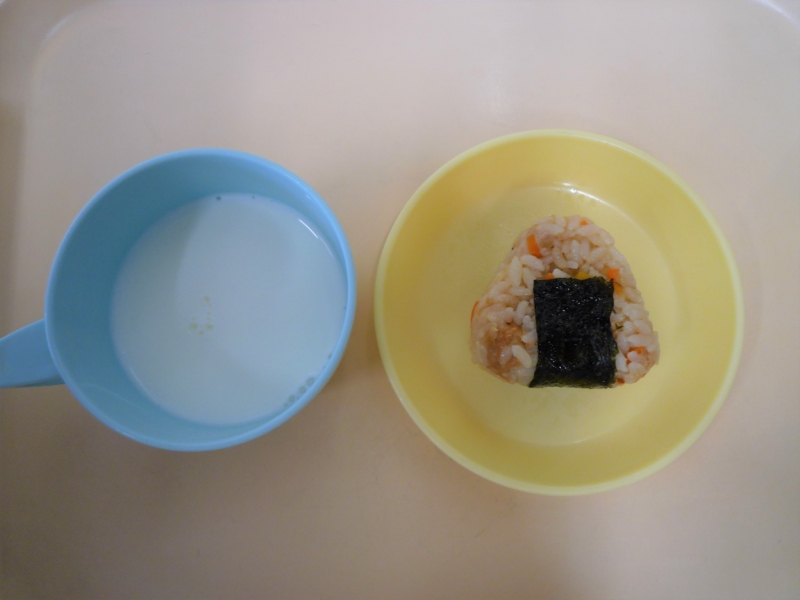 午後おやつ:牛乳、ツナおにぎり