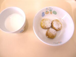 午後おやつ:牛乳、かぼちゃボーロ
