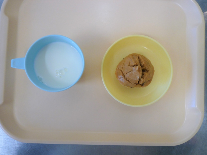 午後おやつ:牛乳、黒糖蒸しパン
