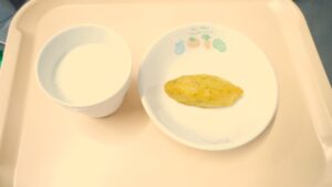 午後おやつ:スイートポテト、牛乳