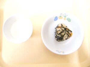 午後おやつ:ツナおにぎり、牛乳
