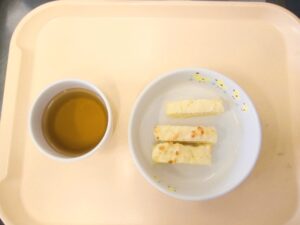 離乳食(後期)午後おやつ:お豆腐パンケーキ、麦茶