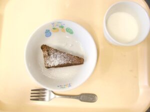 午後おやつ:お豆腐ココアパンケーキ、牛乳