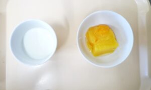 午後おやつ:みかんゼリー、牛乳