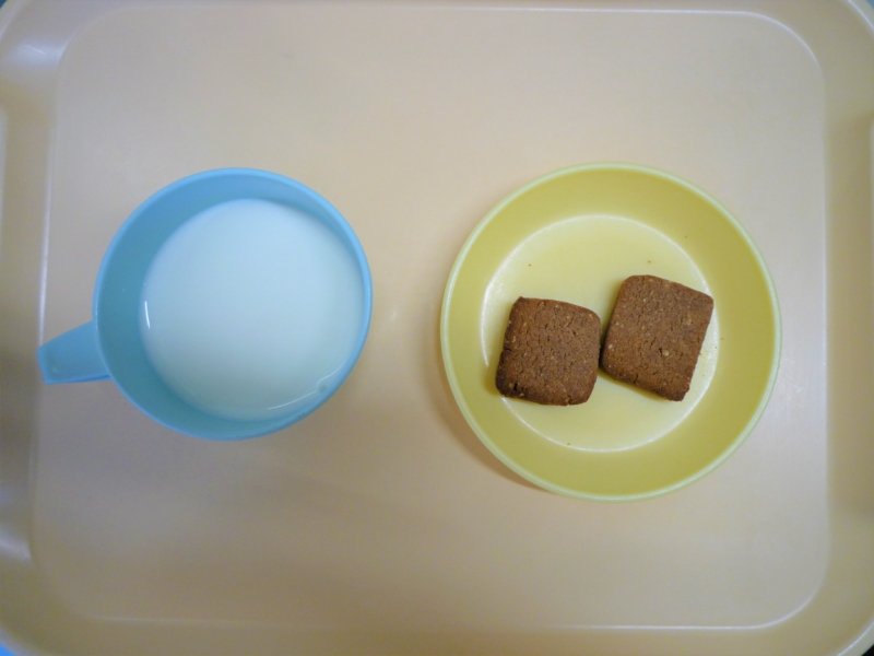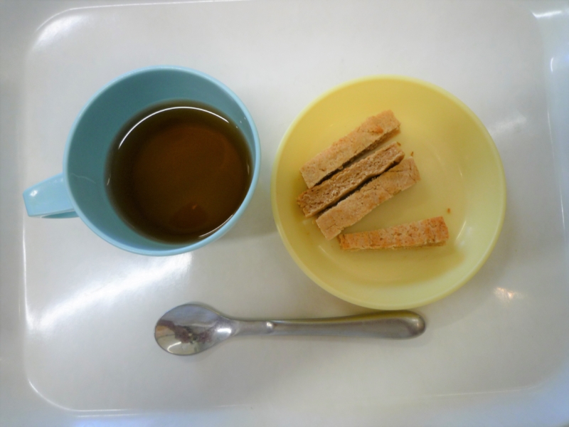 離乳食(後期)午後おやつ:麦茶、きなこパンケーキ