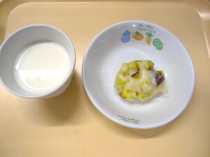 午後おやつ:牛乳、さつまいも蒸しパン