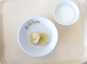 午後おやつ:スイートポテトクッキー、牛乳
