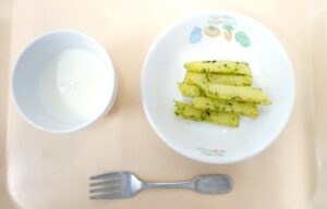 離乳食後期午後おやつ:ベイクドポテト、麦茶