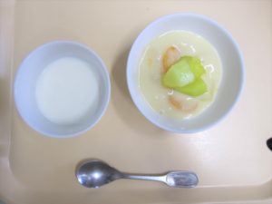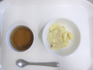 離乳食(後期)午後おやつ:麦茶、バナナクリームあえ