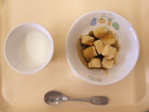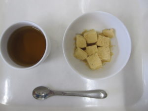 離乳食(後期)午後おやつ:和風豆乳もち、麦茶