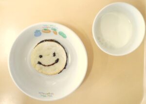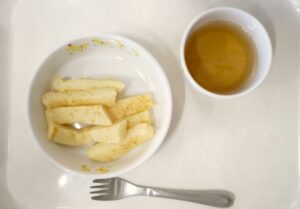 離乳食後期の昼食:ポテトパンケーキ、麦茶