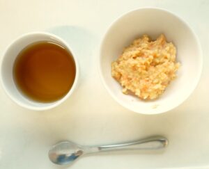 離乳食(後期)午後おやつ:にんじんきなこ蒸しパン、麦茶