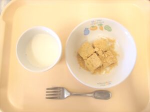 午後おやつ:にんじんもち、牛乳