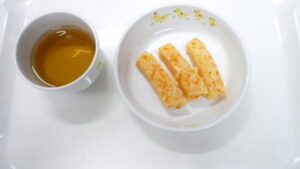 おやつ:キャロットマフィン、牛乳