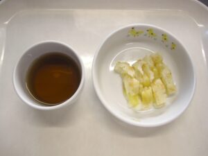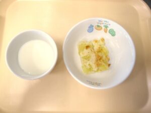 離乳食(後期)午後おやつ:りんごケーキ、麦茶