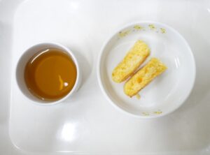 離乳食(後期)午後おやつ:人参パンケーキ、麦茶