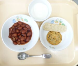午後おやつ:煮豆、おせんべい、牛乳