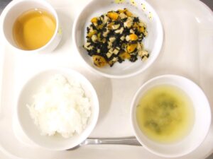 離乳食(後期)昼食:軟飯、高野豆腐とひじきの煮物、みそ汁