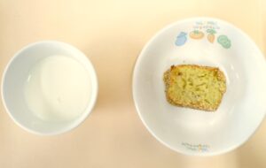 離乳食(後期)昼食:おかゆ、鶏つくねのみぞれ煮、焼きかぼちゃ、みそ汁