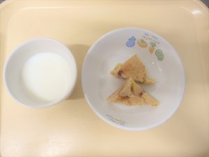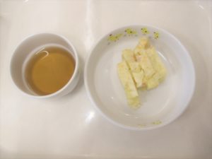 離乳食(後期)午後おやつ:麦茶、りんごケーキ