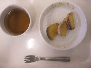 午後おやつ:おさつきなこ、牛乳