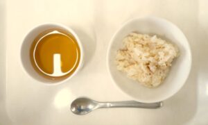 離乳食(後期)午後おやつ:おかかごはん、麦茶