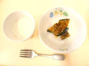離乳食(後期)午後おやつ:大学かぼちゃ、麦茶