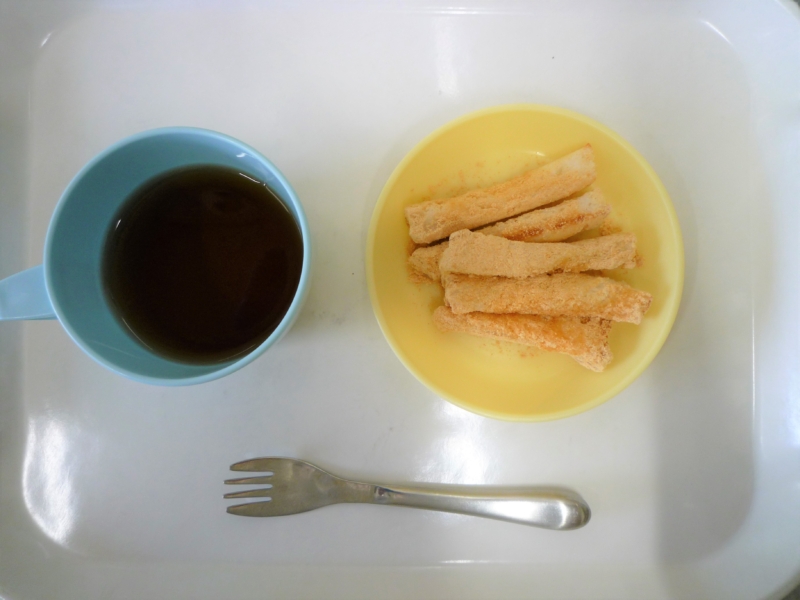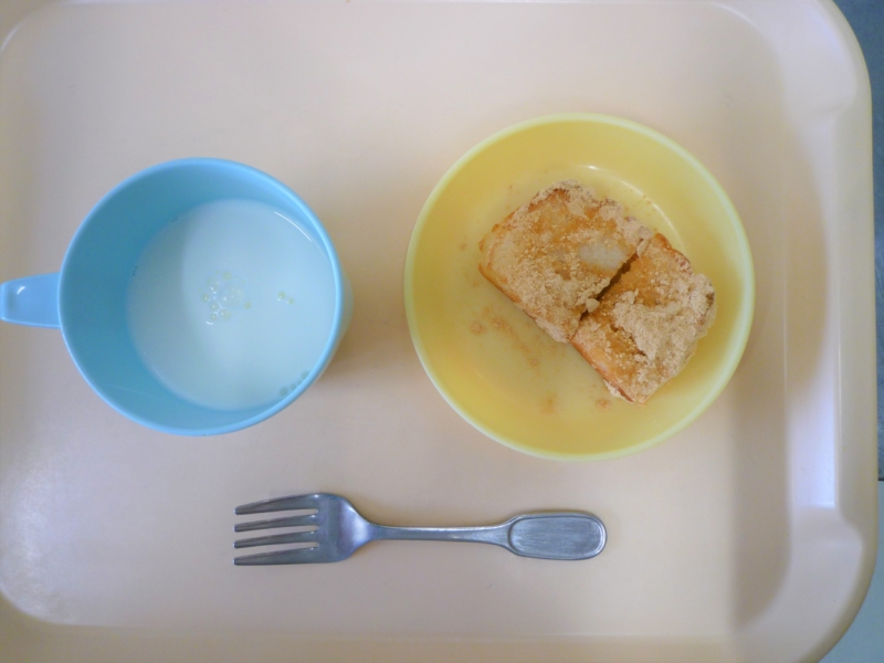 午後おやつ:牛乳、きなこラスク