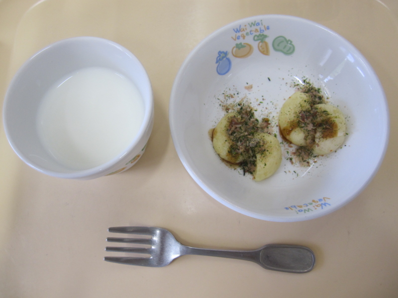 午後おやつ:牛乳、じゃがまるくん