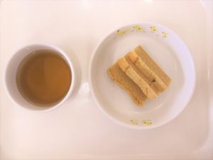離乳食(後期)午後おやつ:麦茶、きなこパンケーキ