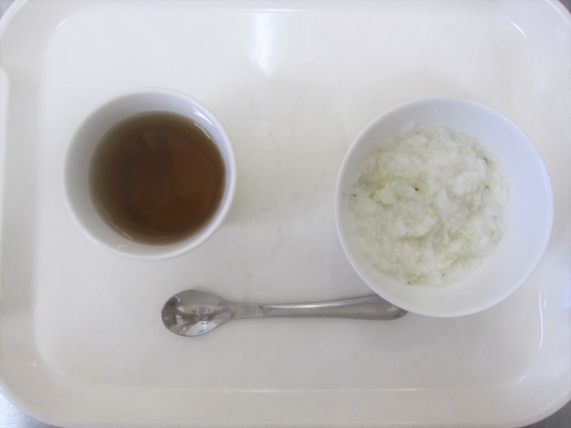 離乳食(後期)午後おやつ:麦茶、しらす粥